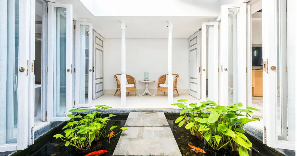 胡蝶蘭が静かに咲き、池には鯉が泳ぐ。その景色は“演出されたリゾート”というより、「自然の中で美しく暮らす時間」をそっと差し出してくれるような感覚。