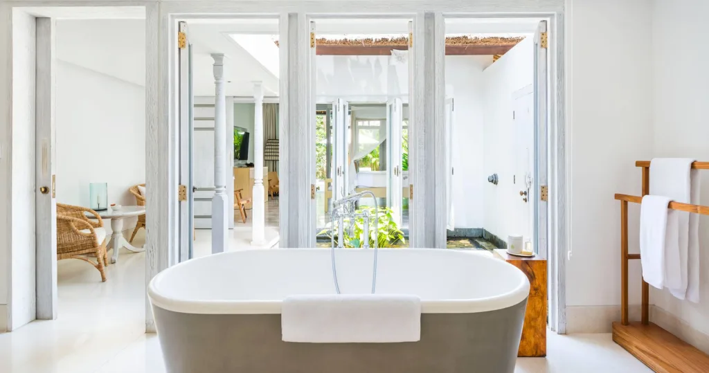 特にバスルームは全室バスタブ付き。シャワー・トイレ・バスタブが独立し、深めのバスタブには可動式のハンドシャワーが付いていてとても使いやすく、お風呂好きの日本人にも素敵なバスタイムを体験できます。ガーゼのような肌触りのバスローブに包まれて過ごす夜は、「自分を労わる」という言葉の意味を思い出させてくれるでしょう。